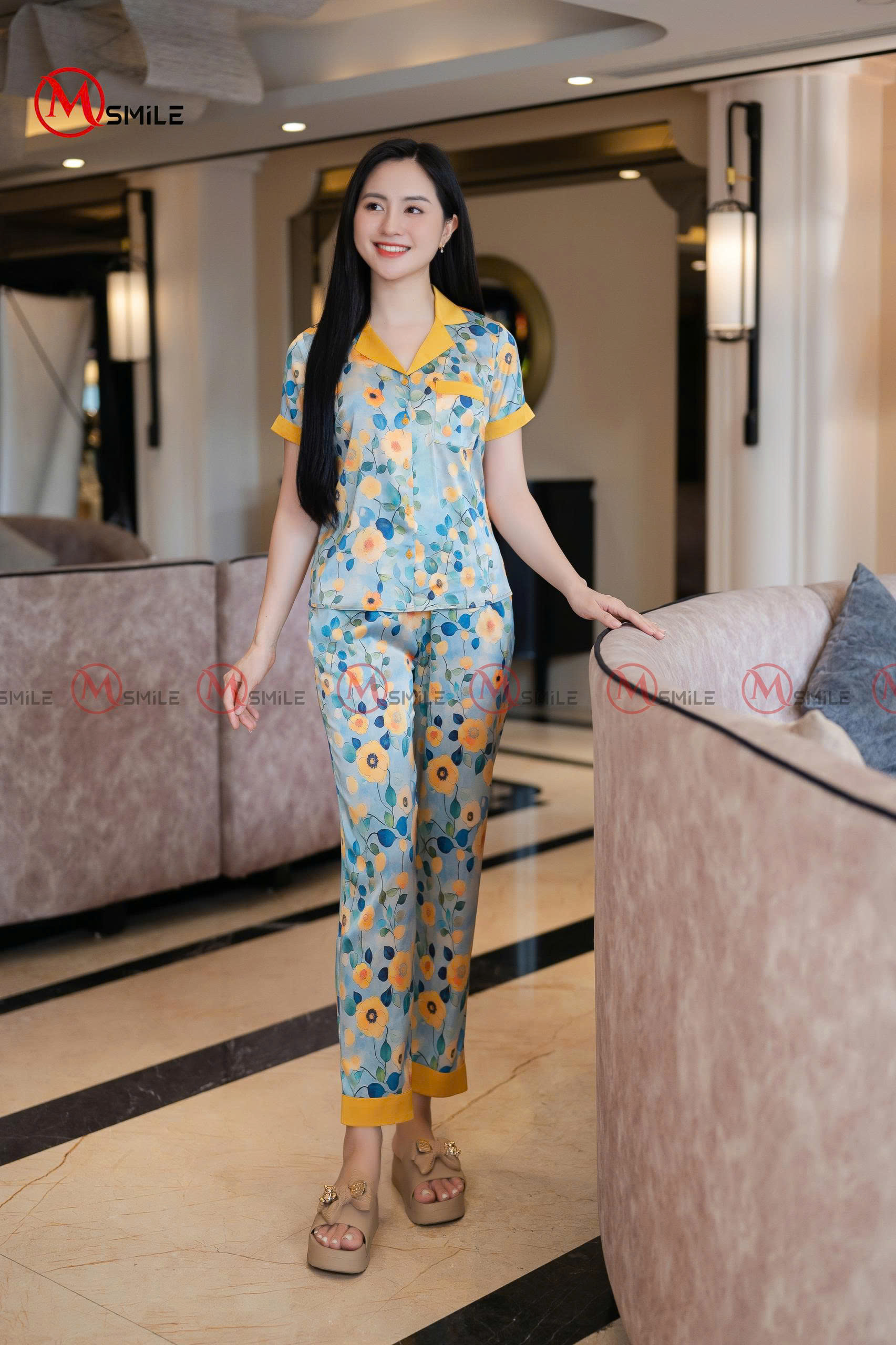 Chất liệu lụa satin cao cấp là điểm cộng hoàn hảo với độ mềm mịn, mát lạnh, tạo cảm giác dễ chịu và thoáng mát suốt cả ngày. Vải có độ rủ nhẹ, ôm mềm theo từng cử động giúp giữ dáng và mang lại vẻ ngoài chỉn chu kể cả khi ở nhà. Thiết kế cổ hai ve phối lé cùng phom dáng quần dài – áo tay ngắn vừa vặn, giúp tổng thể trang phục thêm phần thanh lịch và phù hợp với nhiều độ tuổi.