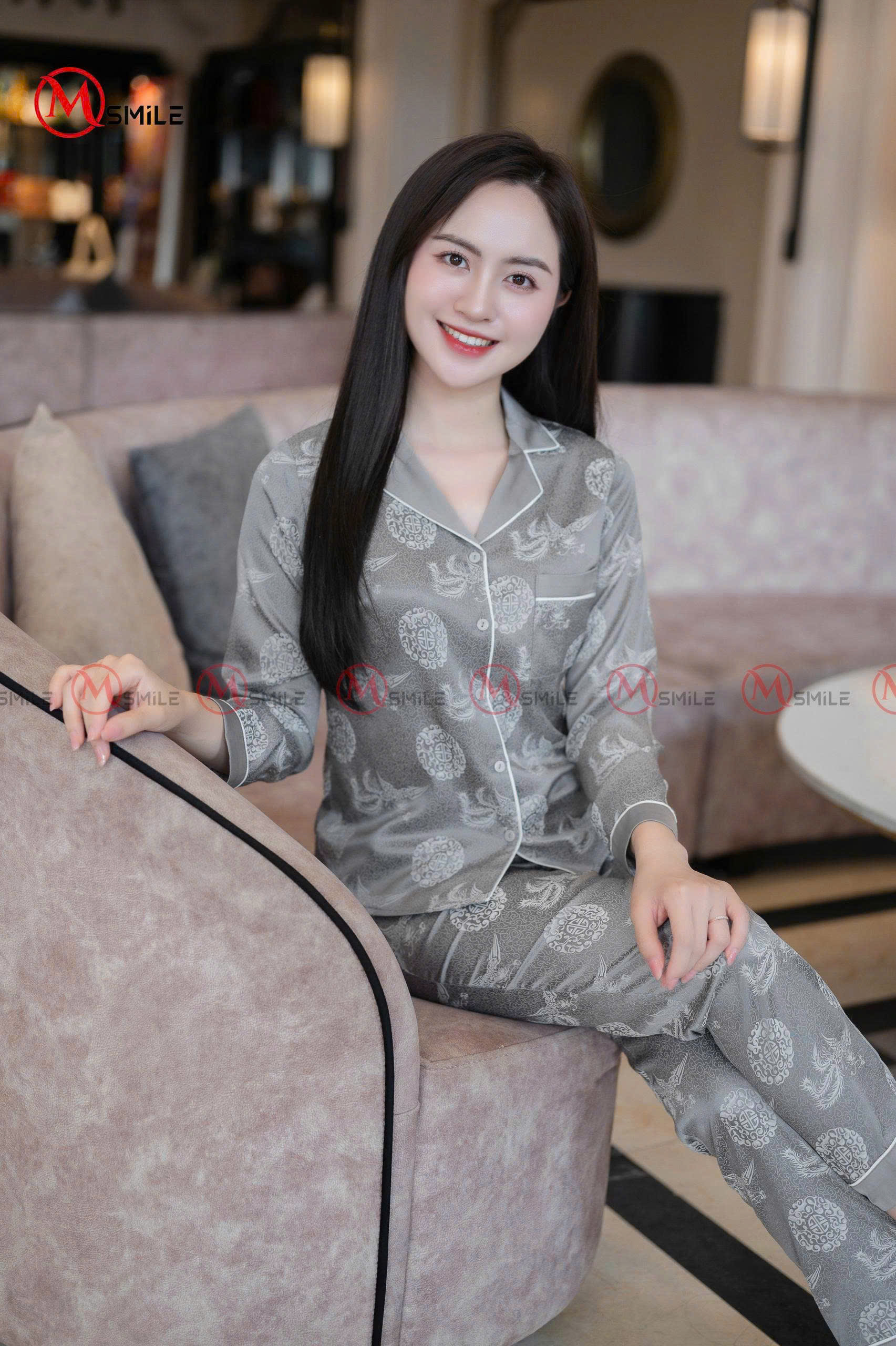 Tái hiện vẻ đẹp cổ điển đầy kiêu hãnh trong thiết kế hiện đại, bộ đồ dài tay họa tiết thọ phụng trên nền lụa gấm tơ tằm cao cấp mang đến sự giao hòa giữa truyền thống và gu thẩm mỹ thanh lịch của phụ nữ thời nay. Đây là mẫu mặc nhà lý tưởng dành cho những ai yêu thích sự sang trọng, kín đáo và vẫn vô cùng mềm mại, thoải mái.