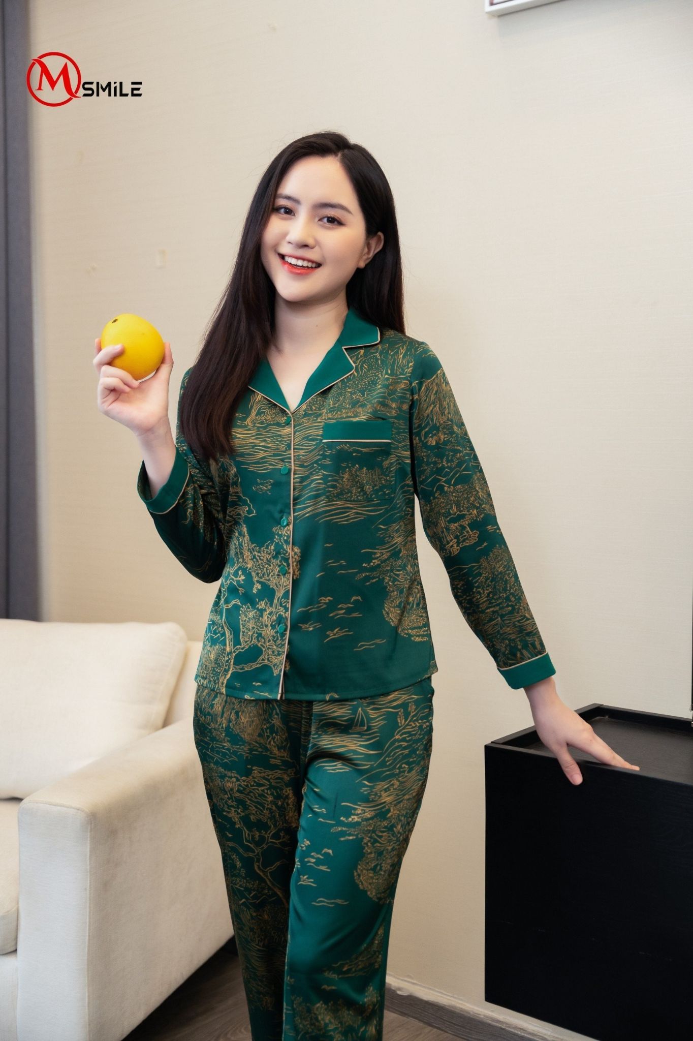 Lấy cảm hứng từ tranh thủy mặc truyền thống, bộ lụa dài tay cổ 2 ve lé phối mang họa tiết phong cảnh độc đáo, giúp bạn nổi bật một cách thanh lịch ngay cả khi ở trong không gian riêng tư. Đây không chỉ là một bộ đồ mặc nhà thông thường mà còn là tuyên ngôn về gu thẩm mỹ tinh tế và cá tính của người phụ nữ hiện đại.
