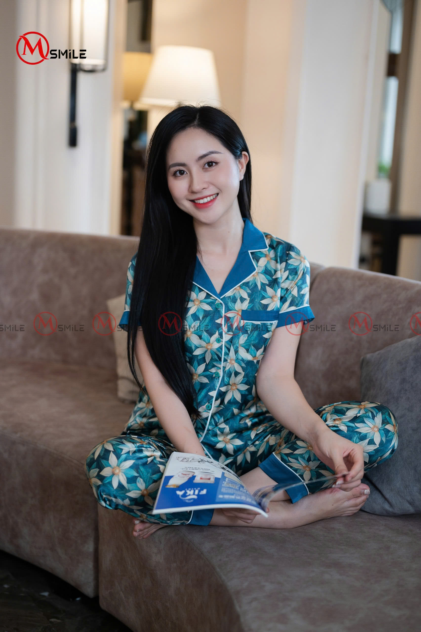 Một chút huyền bí của sắc đen quyến rũ hòa cùng nét tươi mát của màu xanh nhẹ tạo nên bộ lụa satin họa tiết hoa sao sang trọng, tinh tế và đầy sức hút. Chất liệu lụa satin cao cấp mang đến cảm giác mượt mà, mát lạnh, thấm hút tốt và giữ form chuẩn ngay cả khi mặc cả ngày dài. Họa tiết hoa sao tinh tế biểu trưng cho sự kiêu hãnh và tỏa sáng của người phụ nữ hiện đại, trong khi thiết kế cổ hai ve phối lé sang trọng là điểm xuyết nhẹ nhàng nhưng đủ khiến tổng thể bộ đồ thêm phần thanh nhã. Form dáng suông nhẹ giúp tôn dáng, dễ mặc và thoải mái trong mọi chuyển động – dù là ở nhà thư giãn hay dạo phố nhẹ nhàng, bạn vẫn trông thật chỉn chu, quý phái và đầy thần thái.