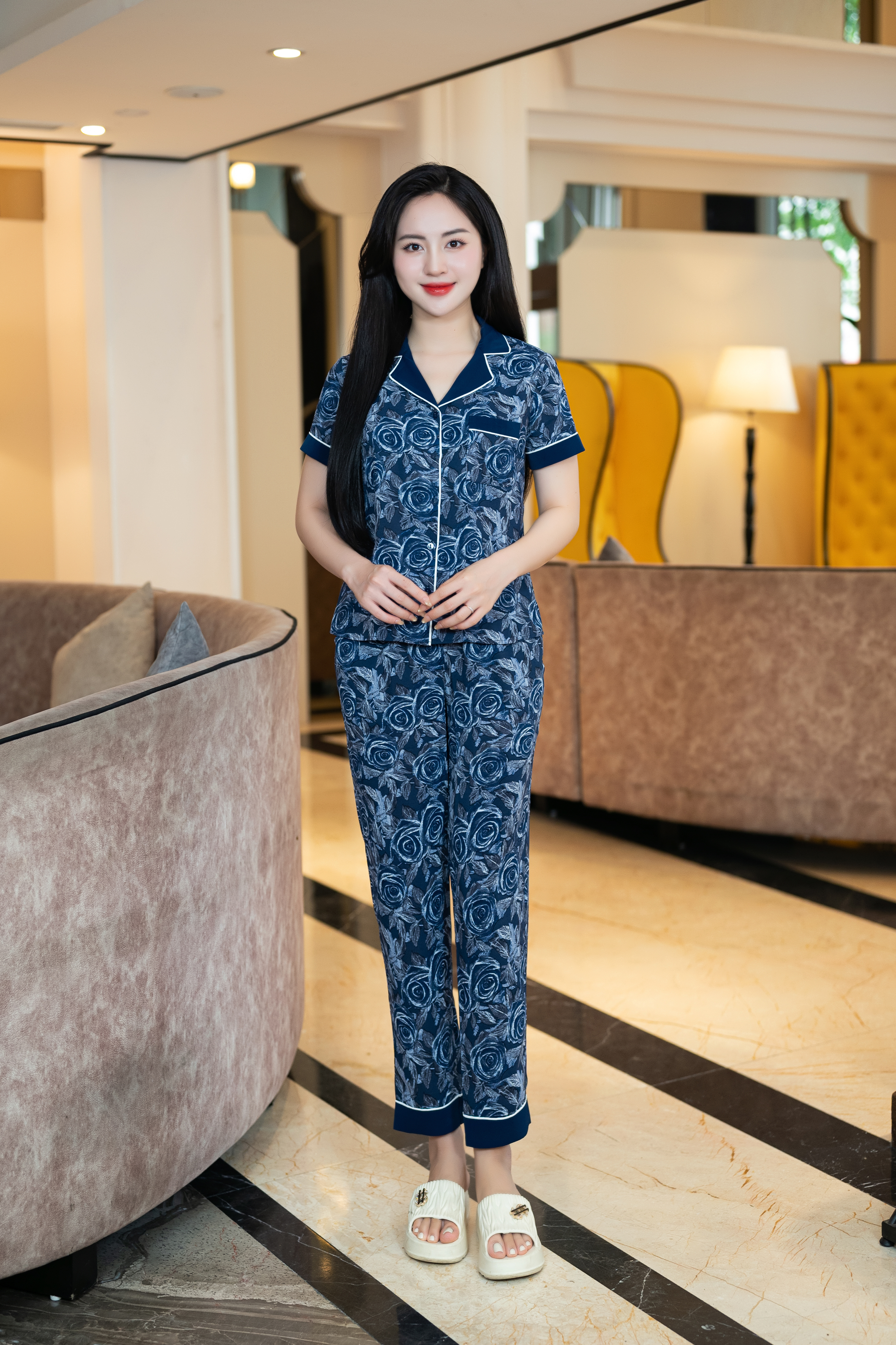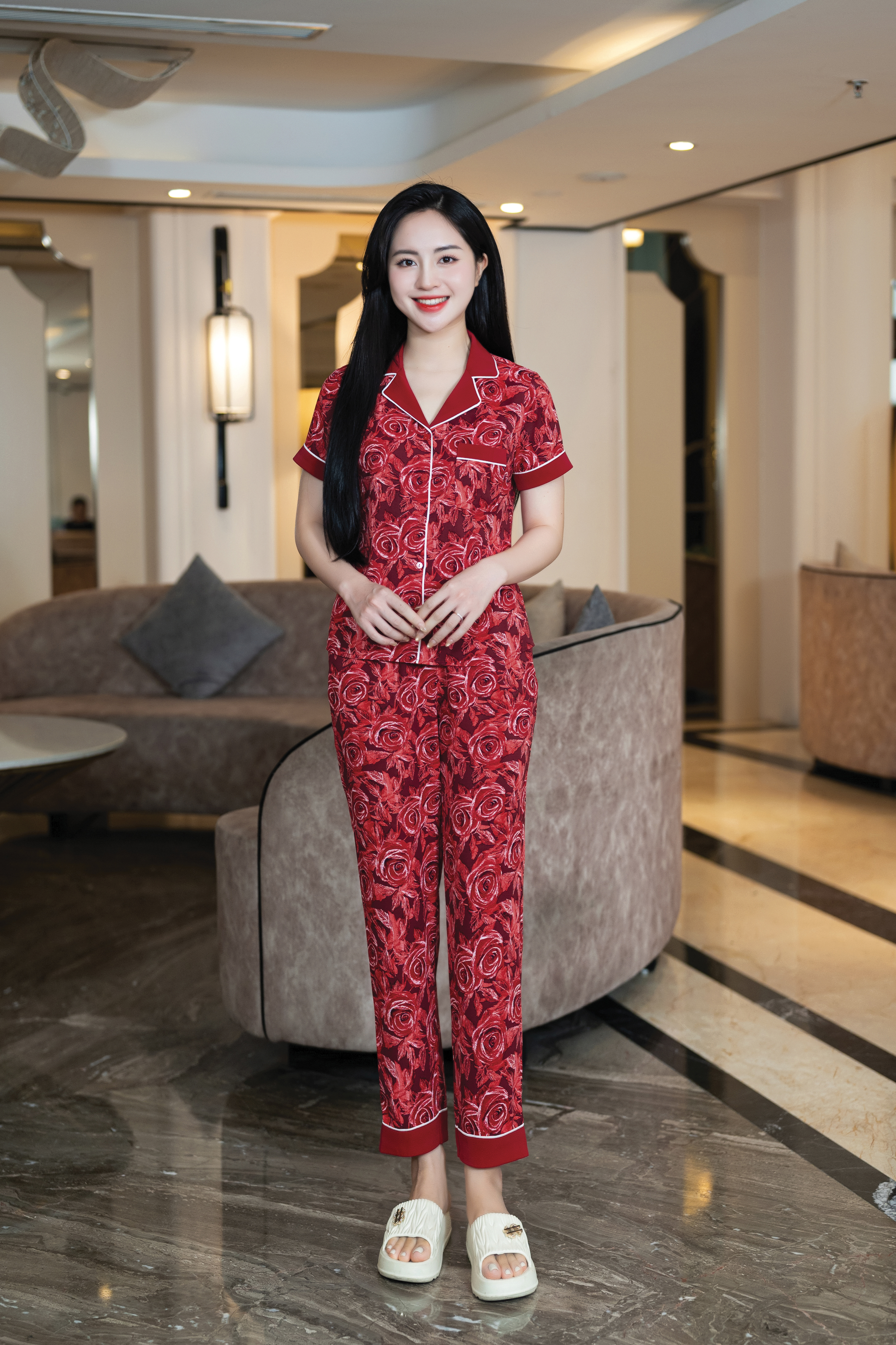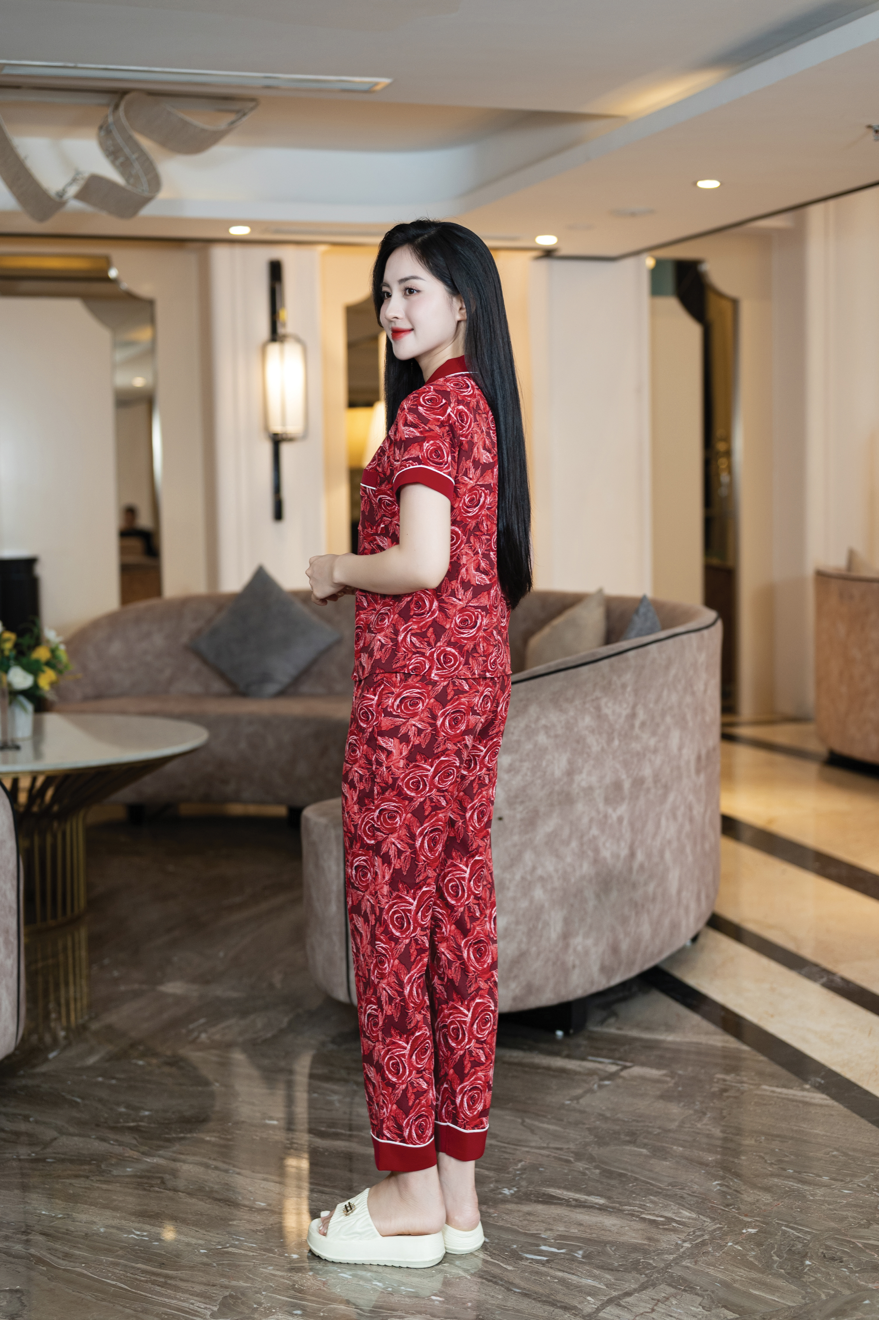 Bộ Quần Dài Tay Ngắn Hoa Hồng Nhật Cổ 2 Ve Phối Lé là lựa chọn lý tưởng dành cho những quý cô yêu thích sự tinh tế, mềm mại nhưng vẫn muốn giữ nét hiện đại trong phong cách mặc nhà. Lấy cảm hứng từ hoa Hồng Nhật – loài hoa tượng trưng cho vẻ đẹp thanh cao và kiêu kỳ, thiết kế này mang đến tổng thể nhẹ nhàng, thanh lịch và đầy cuốn hút.