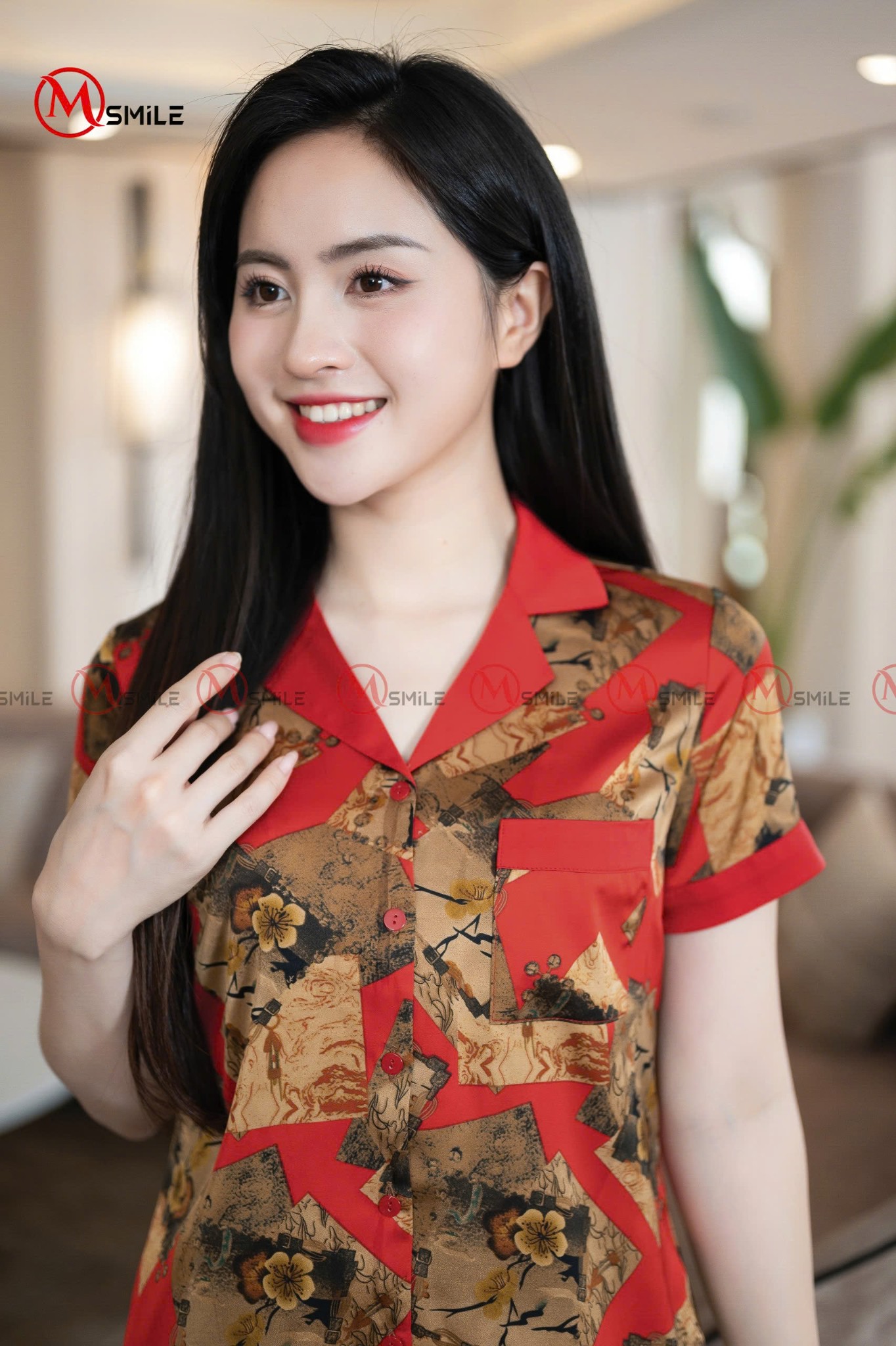 Lấy cảm hứng từ hoa mai – biểu tượng của sự thanh cao, may mắn và khởi đầu mới, bộ mặc nhà tay ngắn vân sóng hoa mai được thiết kế đầy tính nghệ thuật và thanh lịch. Chất liệu lụa satin cao cấp mềm mại, thoáng mát giúp bạn luôn cảm thấy dễ chịu cả ngày dài. Phối màu đỏ và nâu đất chủ đạo gợi nét cổ điển, sang trọng nhưng không kém phần trẻ trung.