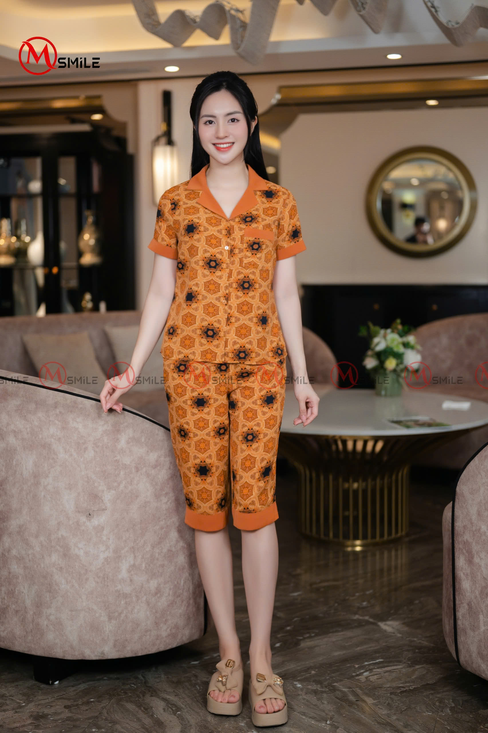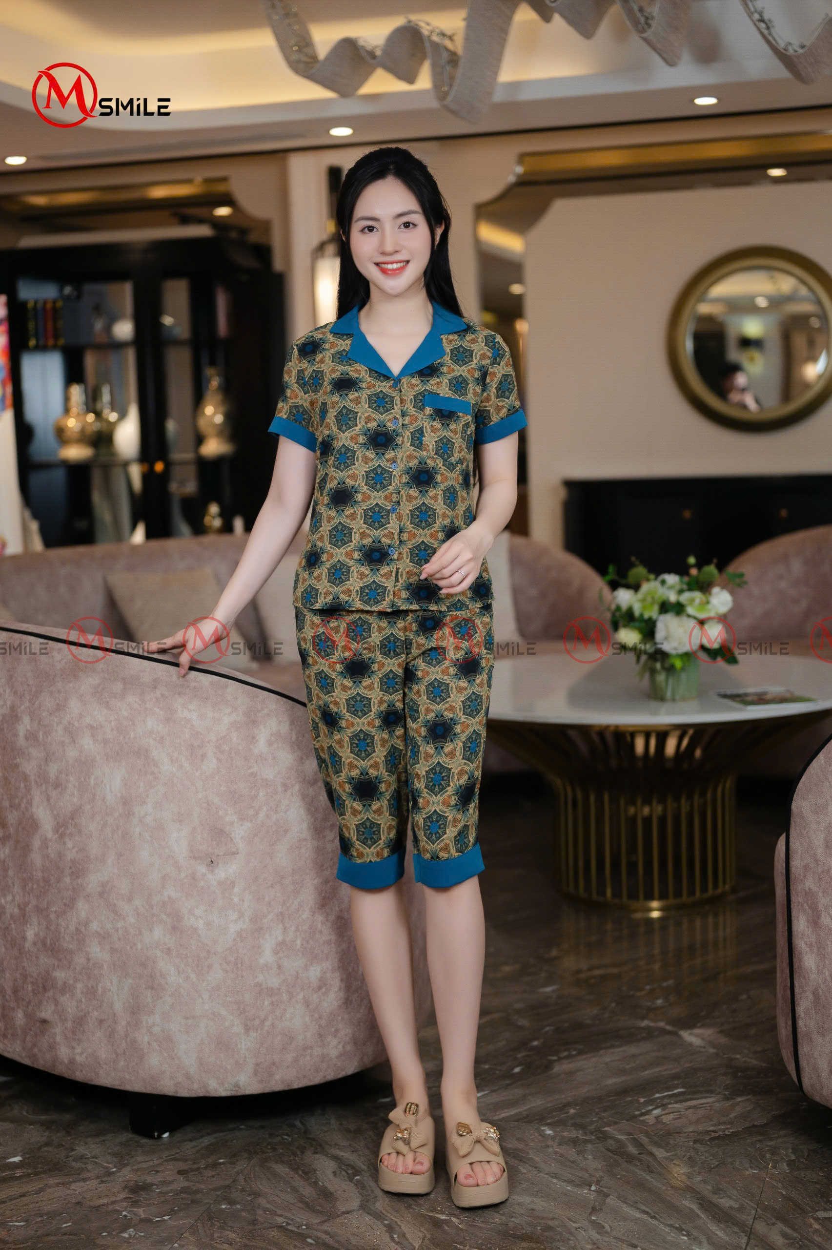 - Dễ dàng phối cùng dép lụa, túi xách vải hoặc phụ kiện đơn giản để tạo nên phong cách mặc nhà hiện đại, gần gũi nhưng vẫn mang dấu ấn cá nhân.