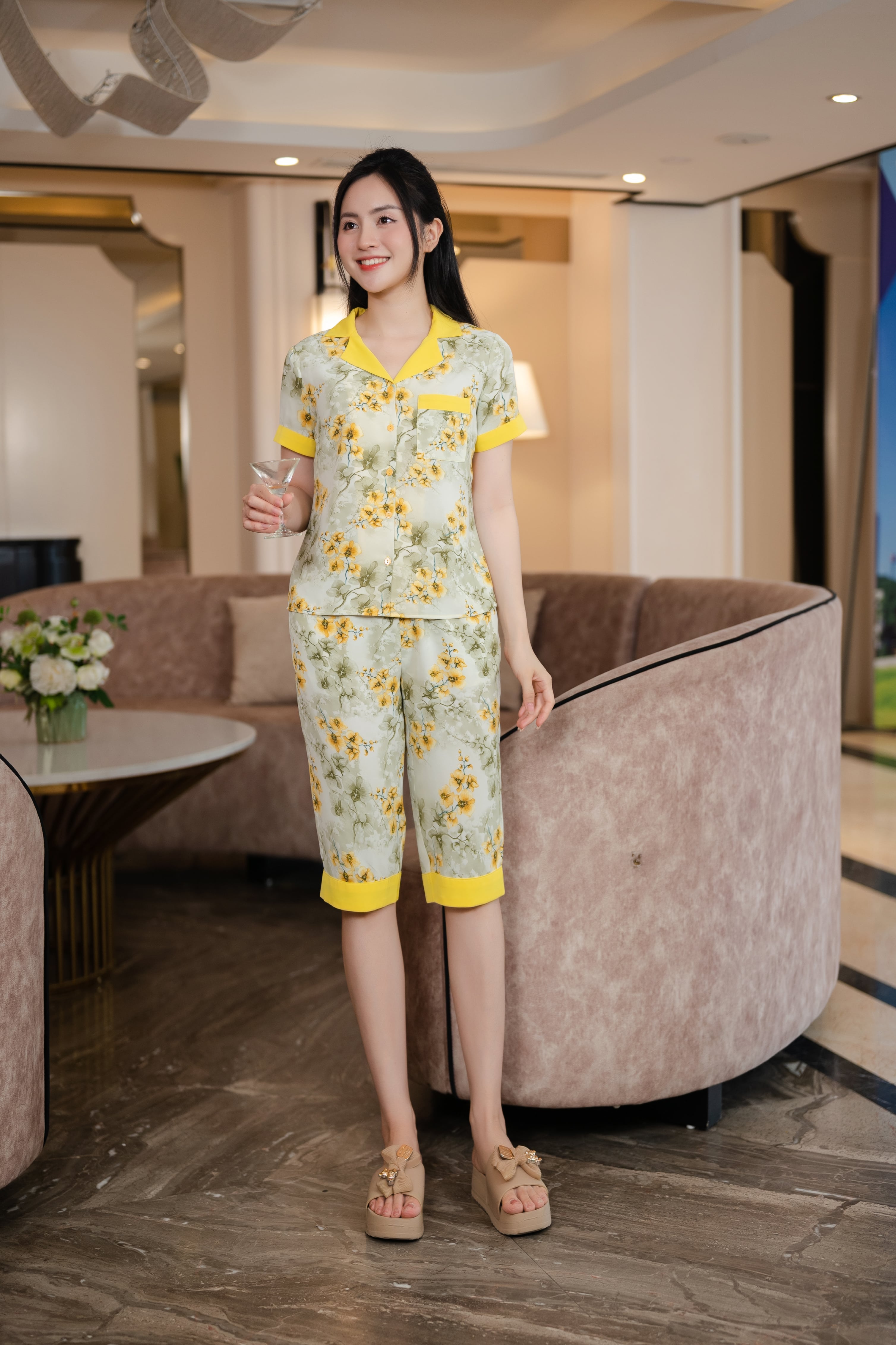 Tay áo ngắn kết hợp với quần lửng là công thức hoàn hảo cho sự thoải mái và năng động, giúp bạn linh hoạt trong mọi hoạt động tại nhà. Hai gam màu chủ đạo là hồng và vàng mang đến cảm giác tươi tắn, nữ tính và phù hợp với nhiều tone da châu Á.