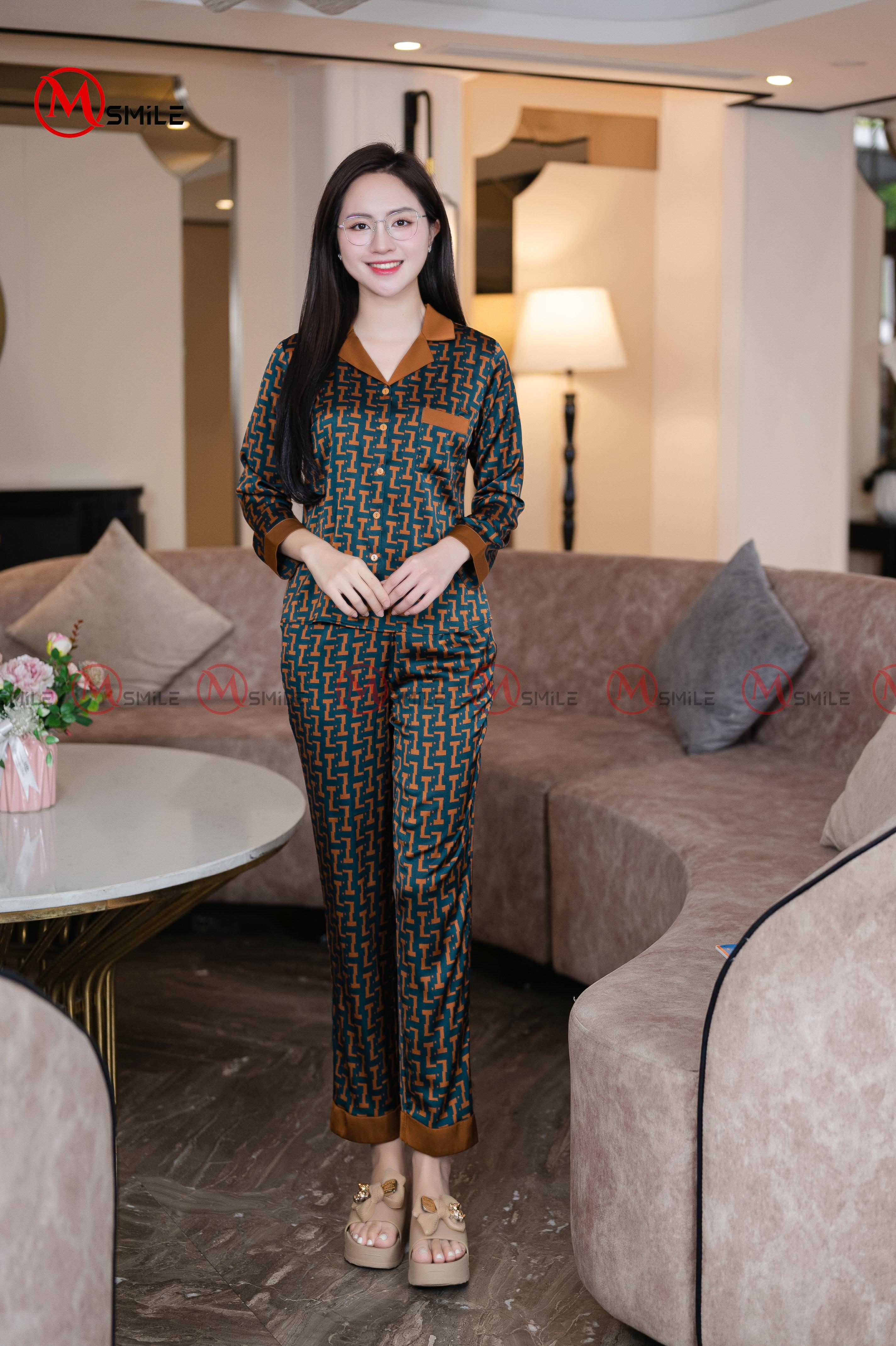 Bộ đồ tay dài TL cổ 2 ve phối màu là sự lựa chọn lý tưởng dành cho những quý cô yêu thích phong cách mặc nhà thanh lịch, hiện đại mà vẫn nổi bật. Với họa tiết hình học cá tính kết hợp sắc xanh – nâu hài hòa, bộ trang phục không chỉ đem lại cảm giác sang trọng mà còn rất thời trang, dễ ứng dụng trong cuộc sống thường ngày.